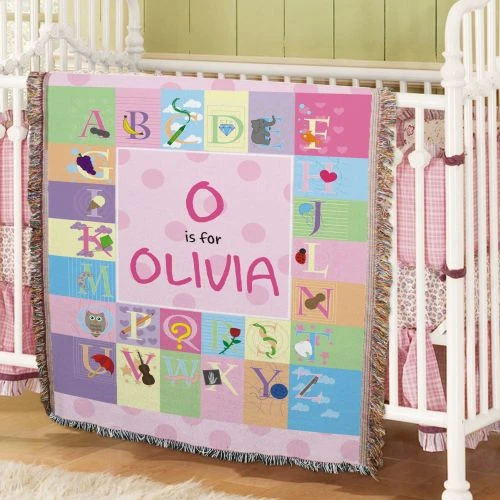 Tapestry Throw measures 54″ x 38″ and is made of 50/50 cotton/poly blend. Machine washable in cold and tumble dry on low. This blanket includes free personalization. Add your child’s name for a one of a kind blanket for any young girl.
