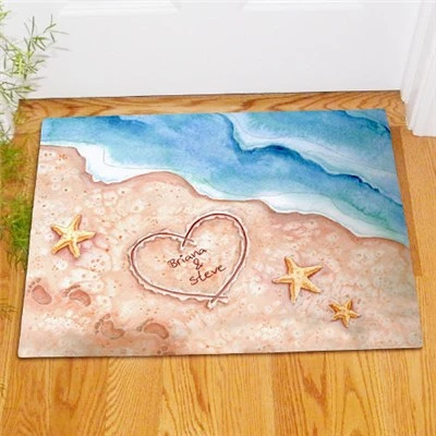 This beach welcome doormat is the perfect addition to your beach home or your summer decor. Personalize with 2 names in a heart drawn in the sand along with this beach background. This is a great way to welcome your guests this summer.