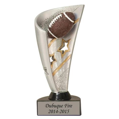 Available in two sizes, this football banner award is ready for your personalized event information. Your choice of up to 3 lines of text will be engraved on a silver plate and will be sure to stand out and display your players and teams accomplishment. With free personalization this award is great for an individual, the whole team, coach, sponsors, or an event.