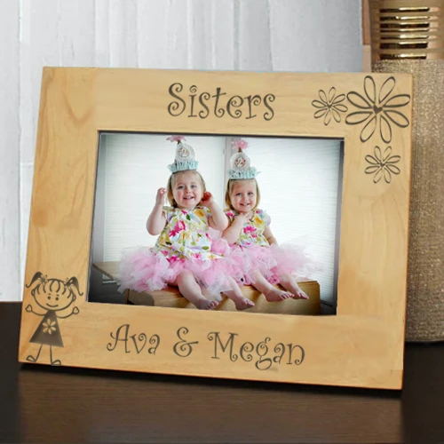 Display a photo of you and your sister in this personalized sisters picture frame. This frame is available in 3 popular sizes and can stand freely on a table or hang on the wall.